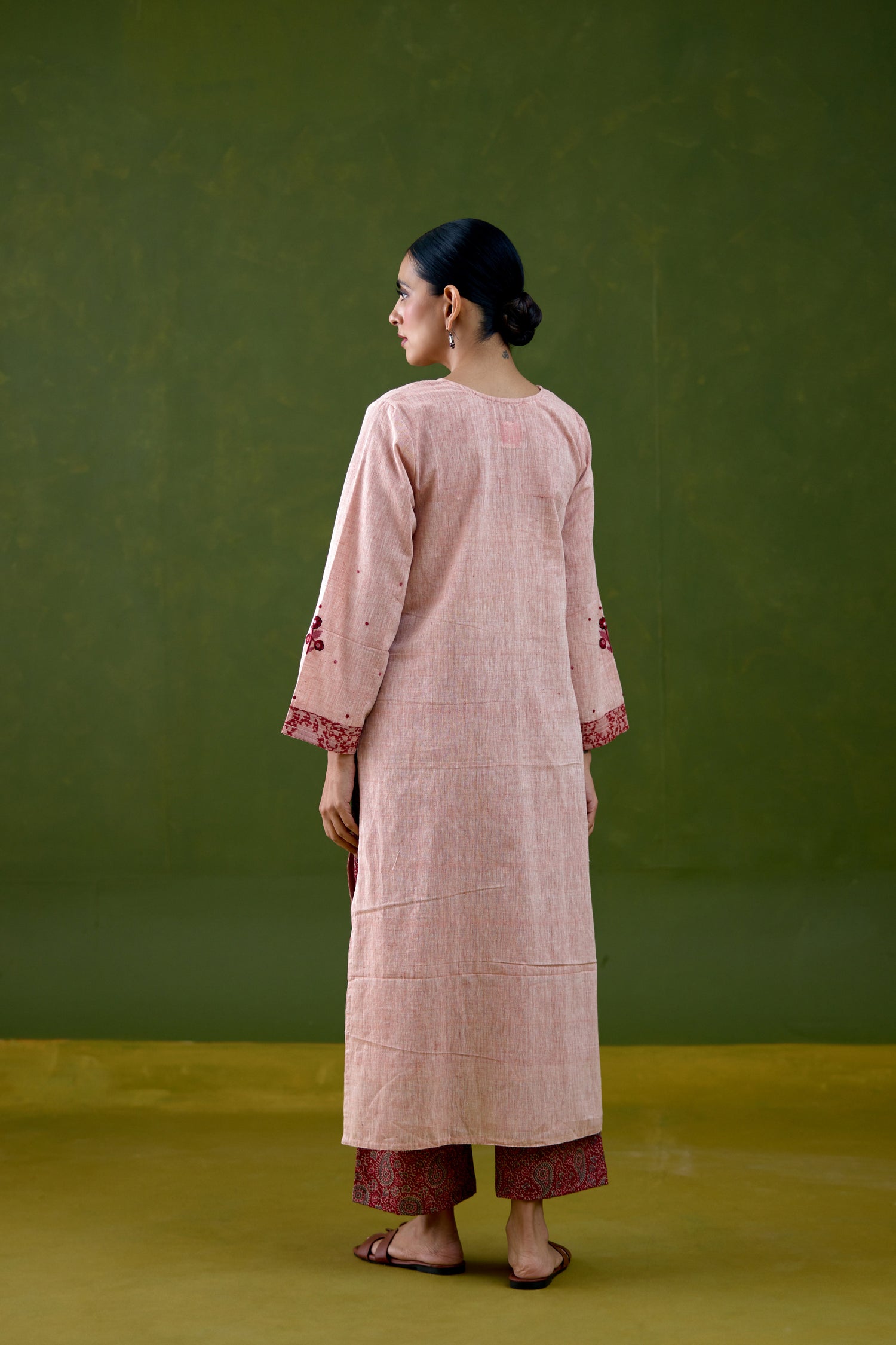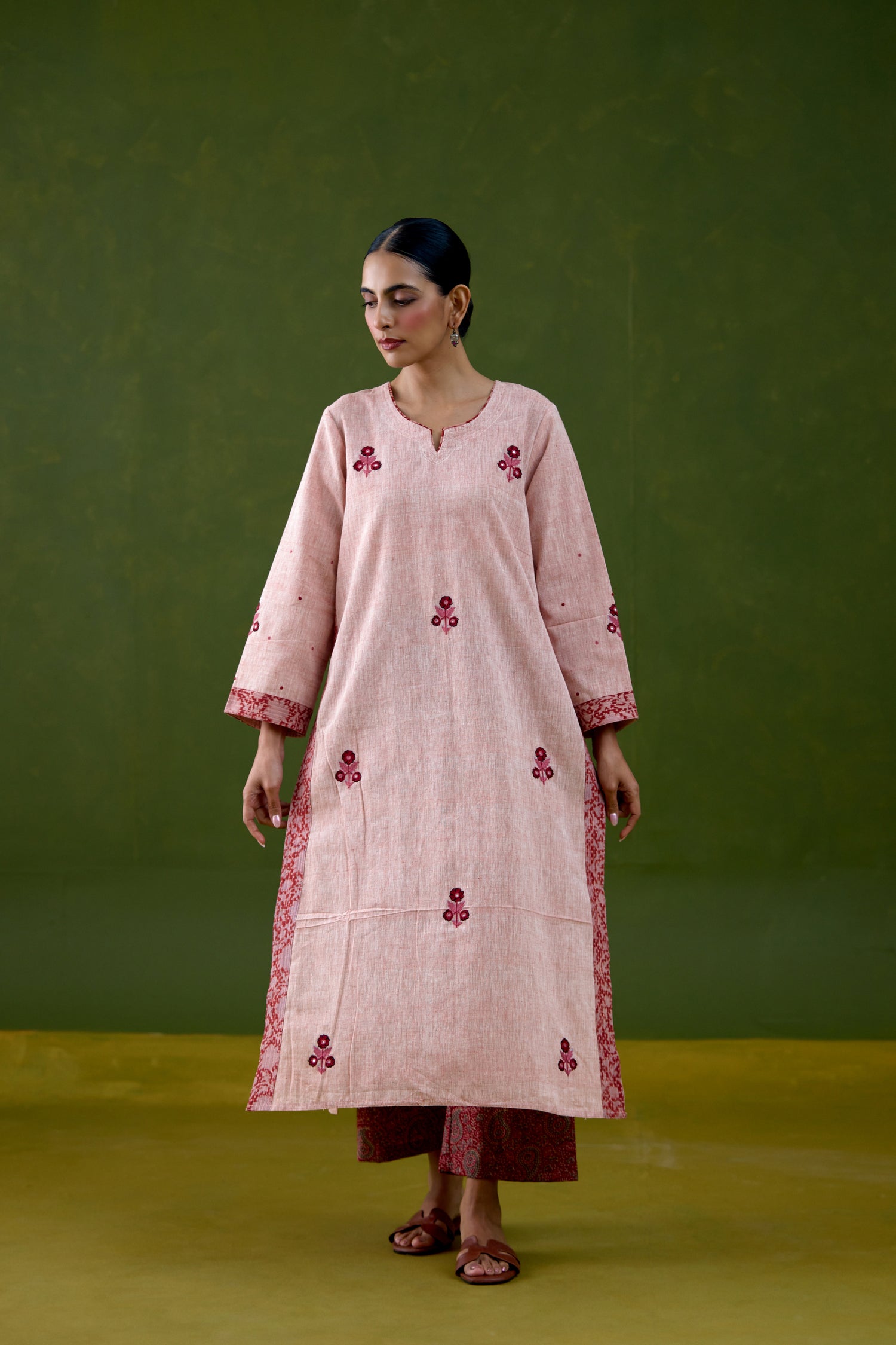Reva Embroidered Malkha Handwoven Co-ord Set Light Pink