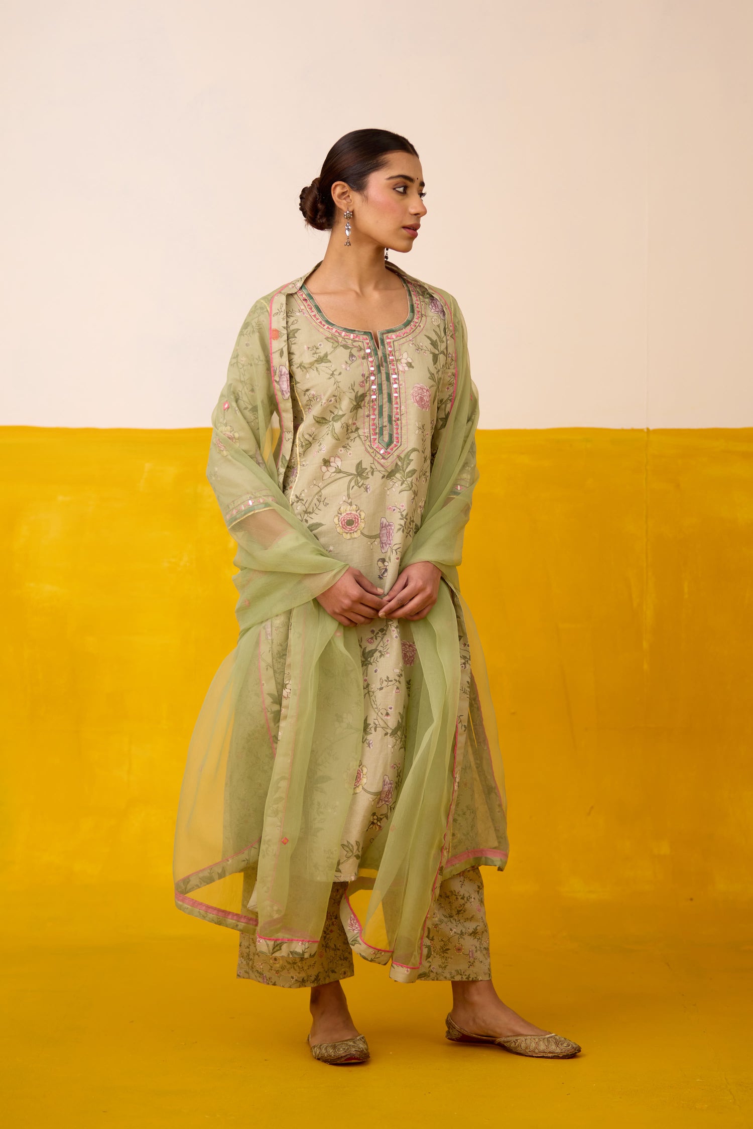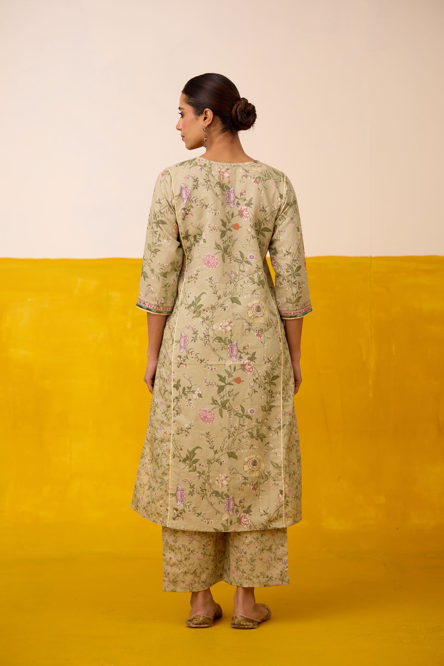 Dienne Linen Printed Kurta Pista Green